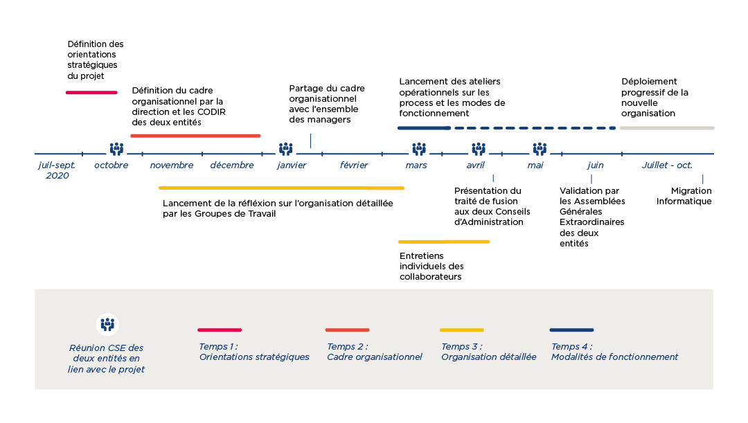 Le calendrier prévisionnel a été défini dans l’objectif d’acter le projet de rapprochement d’ici juin 2021. Les étapes clés de ce projet seront néanmoins menées jusqu’à la fin d’année 2021.
